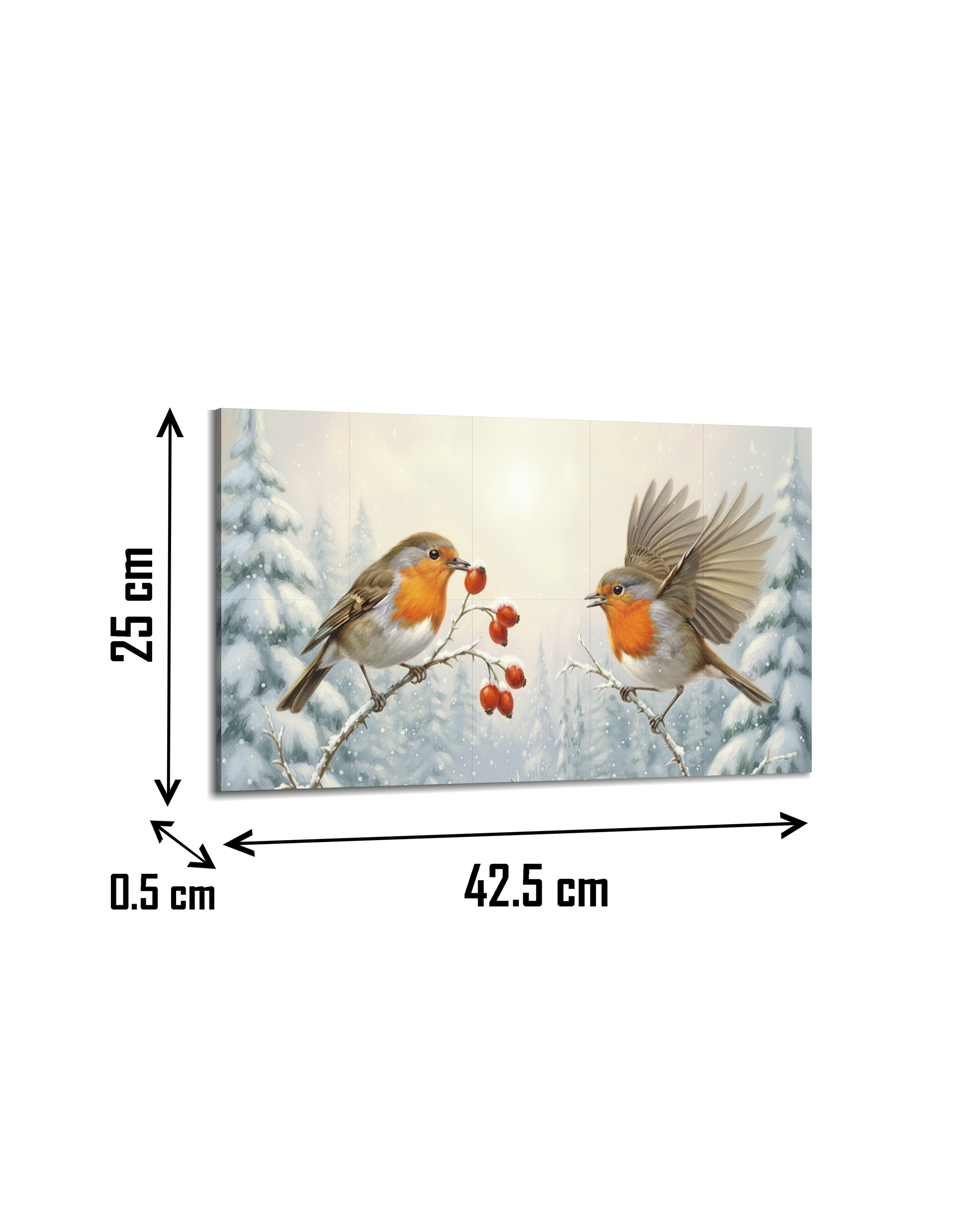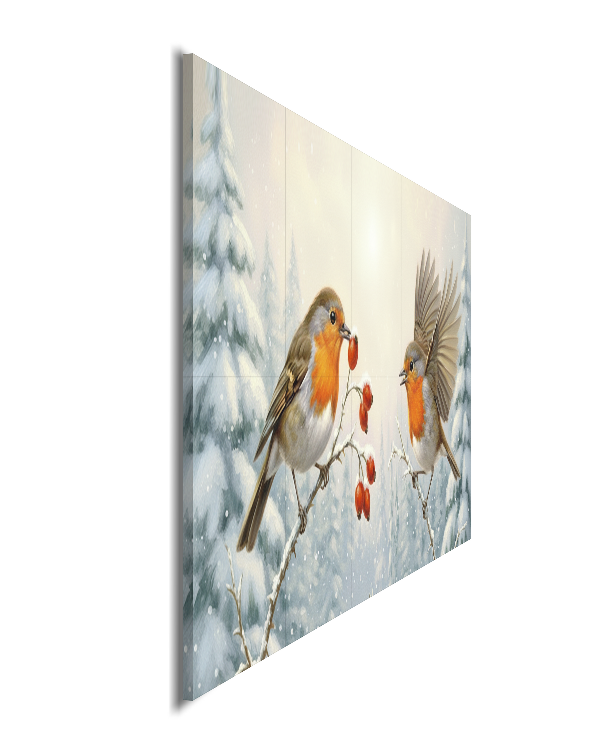 “Zogjët në Dimër” simbolizon rezistencën dhe bukurinë e jetës në mes të mjedisit të ftohtë dhe të qetë të dimrit. Përcjell një ndjenjë paqeje, ngrohtësie dhe magjie të stinës së ftohtë.